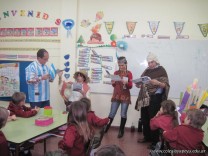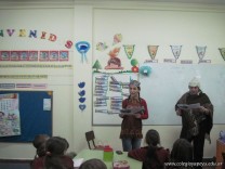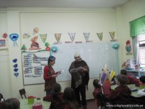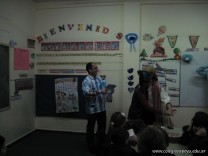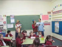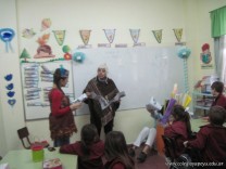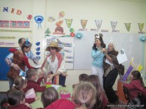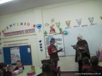Tutores de primer grado “B” y “C” deleitaron a los niños con un teatro leído. La propuesta tiene como objetivo incentivar a los niños a la lectura.