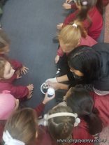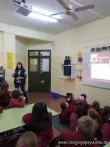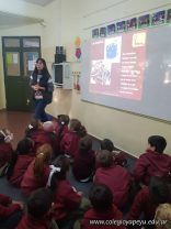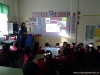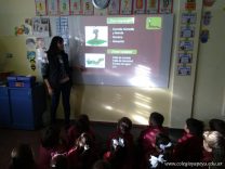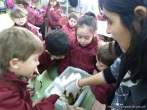 La ingeniera agronóma Amalia visitó a los alumnos de 1er grado. De manera creativa les explicó información nueva y relevante sobre las lombrices. Para hacerlo trajo huevos, humus y ejemplares de lombrices rojas californianas. ¡A los chicos les encantó! Antes de irse pasó por cada sala para observar los lombricarios y dejar consejos y recomendaciones para su cuidado.