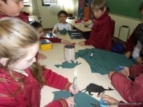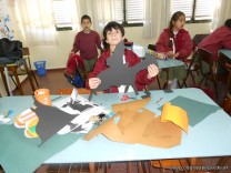 - Los de 1er grado completaron un crucigrama con datos de la vida de San Martín y realizaron un juego de sombras con la canción “José correntino”