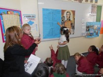 - Los de 4to grado participaron de un Pin – Pon de preguntas, donde pusieron en juego lo que sabían de San Martín.