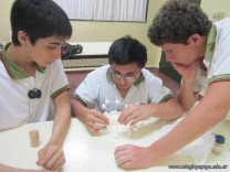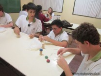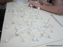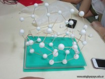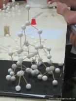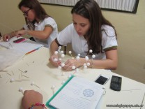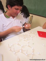 Los alumnos de 5to año, con orientación en Ciencias Naturales, luego de haber abordado en clase los alótropos del carbono, procedieron a reproducir sus estructuras en tres dimensiones. Los alótropos son diferentes presentaciones del mismo elemento en la naturaleza, y en este caso se trata de diamante, grafito y buckmisnterfullerine.