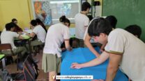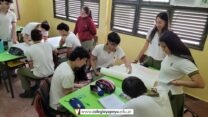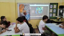 Los alumnos de 5to año comenzaron a trabajar con la técnica que utilizan los actuales muralistas. Se trata del “doodle grid” un recurso que permite tener una referencia a gran escala del boceto original.
