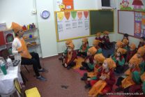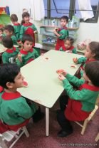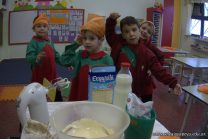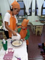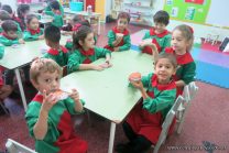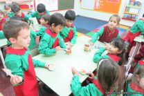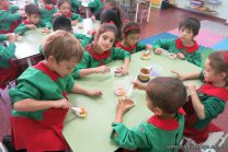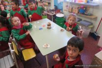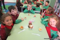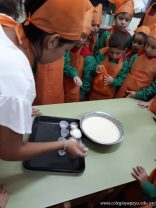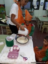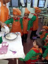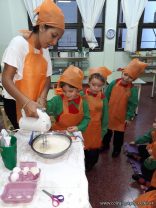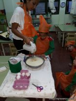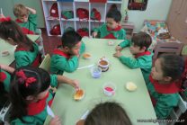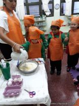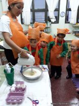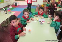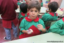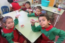 Los niños de las salas de 5 años afianzaron colores y números elaborando cupcakes. Aprendieron los pasos para hacerlos, desarrollando su lenguaje oral y luego disfrutaron comiéndolos.