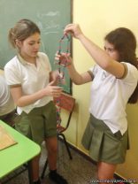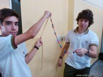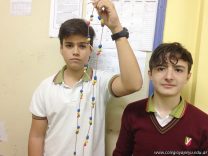 Los alumnos de 3er año, en el espacio curricular Biología, continuaron con el estudio de la estructura del ADN. En esta ocasión, procedieron a armarla en tres dimensiones, representando los nucleótidos que lo forman y respetando la complementariedad de bases nitrogenadas.