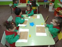 En el marco teórico de las actividades referidas a la primavera los niños de las salas de 3 años armaron margaritas con hisopos. ¡Quedaron hermosas!
