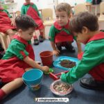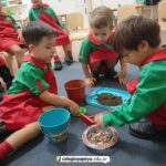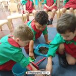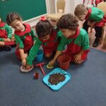 Con entusiasmo y compromiso, los niños de Sala de 4 se convirtieron en pequeños investigadores y exploraron la tierra, las macetas, los rastrillos y las semillas. A través de la observación, la manipulación y la comparación, comenzaron a descubrir qué se necesita para iniciar y cuidar una huerta. Las imágenes muestran a los chicos en acción, involucrados en este desafío.