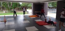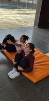Los alumnos del Ciclo Básico en clase de Baile Deportivo, realizaron ejercicios de fuerza y coordinación.