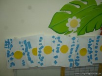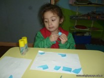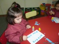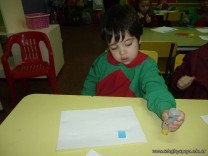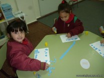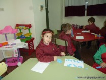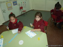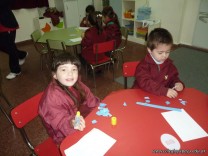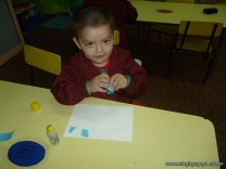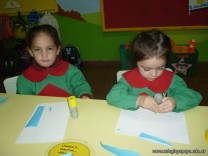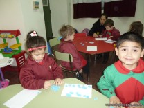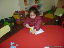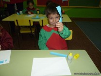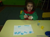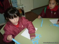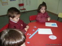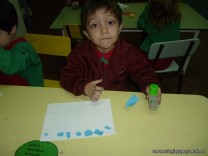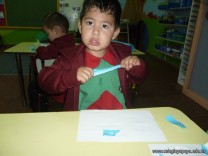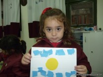 Los niños de la sala de 3 años confeccionaron banderitas para luego utilizarlas en el acto conmemorativo al Día de la Bandera.