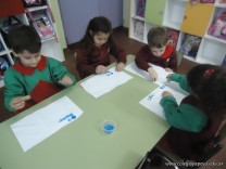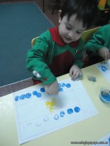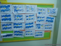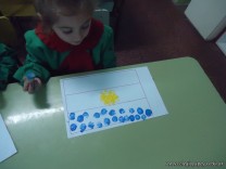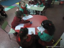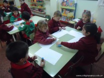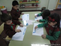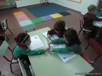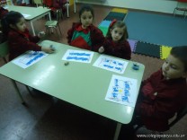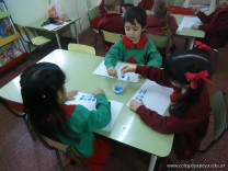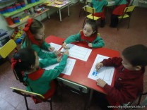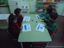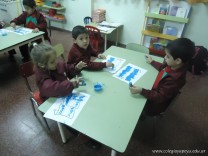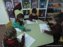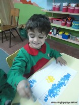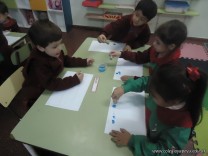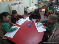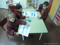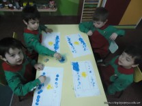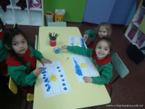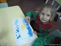 Los alumnos de las salas de 4 años realizaron un homenaje nuestra bandera, realizaron una técnica, en la que sobre una hoja, pintaron con sellos de corcho.