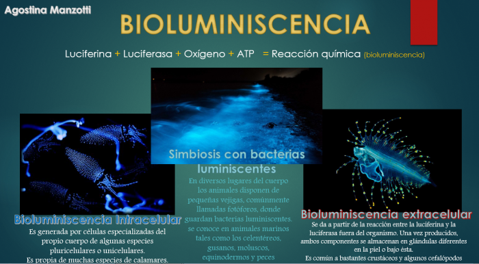 Los alumnos de 4to año de la modalidad en Ciencias Naturales, en el espacio curricular Química I, analizaron las reacciones químicas involucradas en los diferentes tipos de bioluminiscencia. A partir de la información analizada confeccionaron carteles digitales.