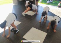 Las alumnas de 6to, a través de la ejecución de Caminata de Oso, comenzaron a fortalecer el tren superior y zona media del cuerpo. La misma consiste en ponerte en posición de cuadrupedia, levantando las rodillas ligeramente del suelo para mantener el cuerpo en línea recta. Luego, comenzar a caminar hacia adelante y hacia atrás, manteniendo la posición de cuadrupedia y el abdomen contraído en todo momento.