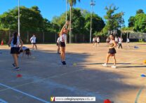 Estas fotos capturan momentos emocionantes durante la práctica de Cestoball, donde nuestras estudiantes se concentran en la preparación física y el ritmo de un tiempo. Cada imagen refleja la determinación y el esfuerzo de las alumnas mientras perfeccionan sus habilidades en este deporte dinámico y estratégico. A través del Cestoball, nuestras alumnas desarrollan destrezas físicas, trabajo en equipo y disciplina, fortaleciendo valores fundamentales para su crecimiento integral.