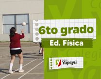 Las alumnas de 6to grado practicando ejercicios del Cestoball.