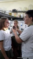 Los alumnos de 5to año de la modalidad Ciencias Naturales, en el espacio curricular Biología II, realizaron diversas experiencias sobre el funcionamiento de los órganos de los sentidos. Las llevaron a cabo en el laboratorio y con los resultados registraron datos que compararon y corroboraron con lo aprendido en las clases teóricas.