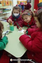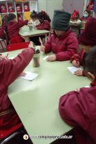 En está actividad los/as niños/as de la Sala de 4 años están dibujando los personajes de una canción llamada “Abajo de un botón ” , la cual fue previamente aprendida y cantada.