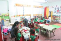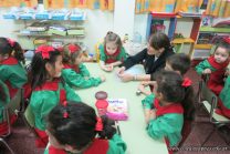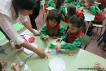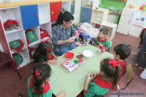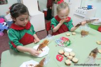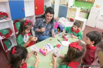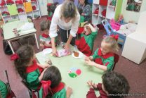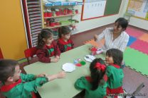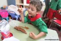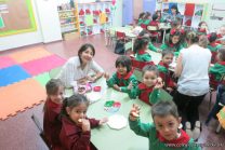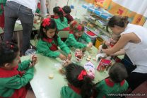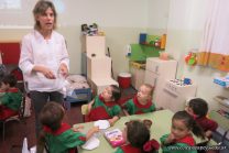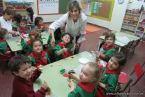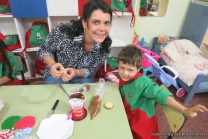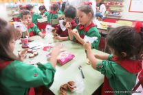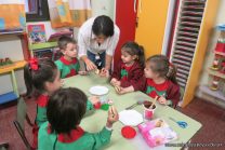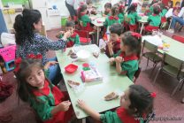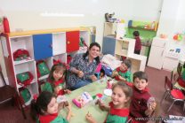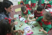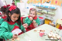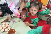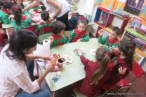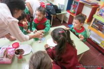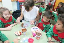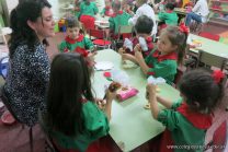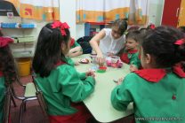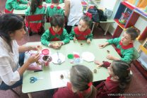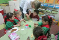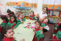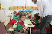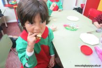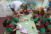 Los niños de la sala de 4 años de la señorita María Belén recibieron la visita de Gabriela, Agostina, Natalia y Marcela, madres de Franco Clemente, Lorenzo Lange, Clara Beláustegui y Benito Lomónaco. Junto a ellos se divirtieron y disfrutaron preparando deliciosos alfajorcitos de maizena.