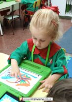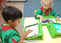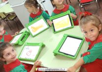 Los niños de sala de 3 años iniciaron las clases de computación utilizando Ipads, donde comienzan a desarrollar la motricidad fina, mediante los trazos. Utilizan software específicos para estas actividades.