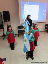 Del mismo participaron la sala de 3 años brindándonos la representación de la canción “Salve Argentina” y “Pinto la Patria” y las salas de 4 años entonaron la canción “Banderita tuya y mía”. Los mismos fueron acompañados y guíados de la profesora de música, Natalia Romero.