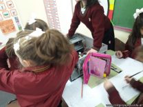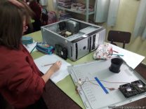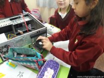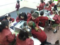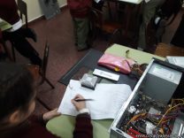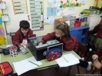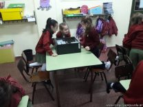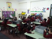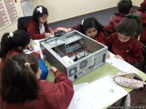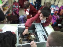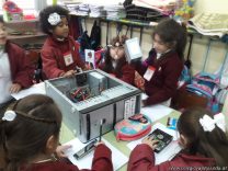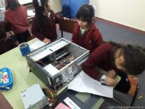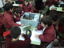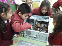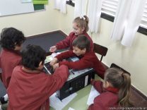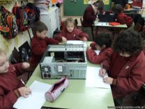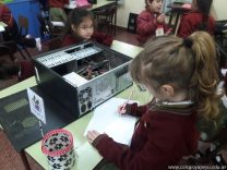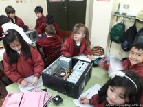 Los alumnos de 1er grado hicieron una clase de laboratorio de Computación para aprender cómo son las partes de la computadora que normalmente no pueden tocar. Además de desarmar el gabinete, pudieron tocar y ver cuáles son los componentes del mismo (placa madre, cpu, memoria, disco rígido). Luego graficaron las partes que encontradas y las identificaron en las imágenes que proyectadas.