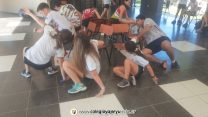 Los alumnos de 6to año iniciaron la mañana reencontrándose con una divertida dinámica propuesta por los profesores de Educación Física, seguida de una reflexión sobre lo que quieren que pase este año como Promo. Luego divididos en grupos e identificados por pulseritas de colores iniciaron una serie de juegos divertidos como ser: armar y remontar barriletes, el juego de la silla, “pasamos el balde con agua”, pistas de obstáculos con los ojos vendados…