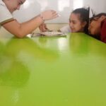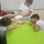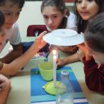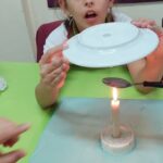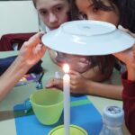 Los alumnos de 5.º grado realizaron una experiencia práctica para comprender cómo se forman las nubes. Utilizaron materiales simples como agua natural, sal, una cuchara, una vela y un plato. Durante el experimento, observaron cómo el agua, al calentarse con la vela, produce vapor que luego entra en contacto con una superficie más fría (el plato), provocando la condensación en pequeñas gotitas, similar a lo que ocurre en la atmósfera con la formación de las nubes. A través de la observación, la curiosidad y el intercambio de ideas, los estudiantes pudieron comprender este fenómeno de manera concreta y significativa.