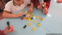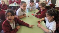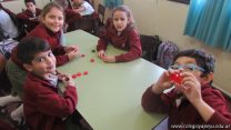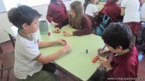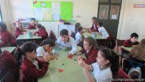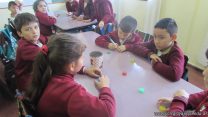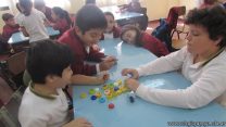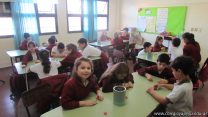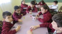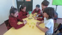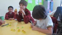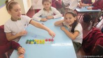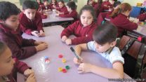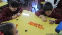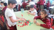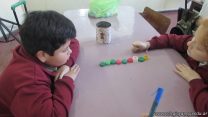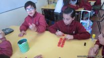 En el marco del proyecto “YapeyúEsAmbiente”, los chicos de tercer grado reutilizaron tapitas para armar un juego de tablas de multiplicar.