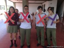 Los alumnos de 3er año resolvieron problemas de genética (más específicamente de cruzamientos), actuando ellos mismos como los cromosomas, portando diferentes caracteres. La clase fue desarrollada en el tercer piso, y la resolución se tornó un tanto más divertida.
