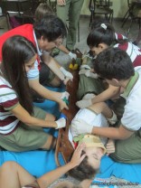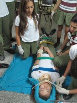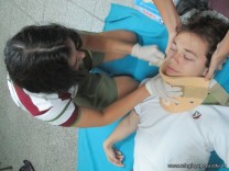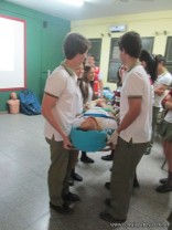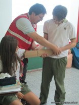 Con respecto a objetos empalados, se explicó como proceder, y se practicaron diferentes tipos de vendajes, en cabestrillo, circular y en ocho, con vendas de Cambridge. Tambien se les ensenó a inmovilizar una ferula en caso de necesidad de inmovilizar un miembro.