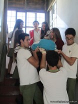 Por último, se procedió a la practica de trabajo en equipo, ejecutando la atención primaria y el traslado de una víctima politraumatizada sobre una tabla de rescate, subiendo y bajando escaleras.
