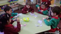 En el marco de la Unidad Didáctica “Bienvenida Primavera”, los niños de sala de 4 años, confeccionaron flores para decorar el pasillo del jardín.