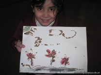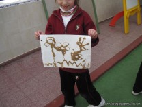 Los alumnos de 2do grado, en horas de Educación Plástica, descubrieron la textura a través de un dibujo en plasticola cubierto de arena.