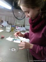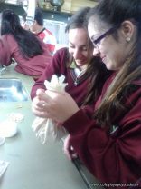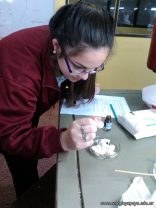 Los alumnos de 5to año con orientación en Ciencias Naturales, obtuvieron gluten a partir de harina de trigo mediante lavado. Comprobaron el avance de la extraccion de almidon con reacciones especificas para detectarlo y confirmaron la separacion del gluten mediante reacciones para detectar proteinas.