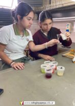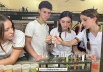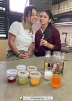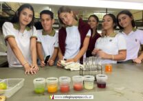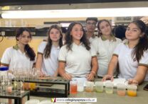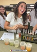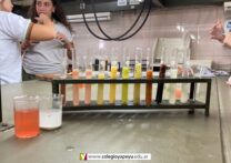 Los alumnos de 4to año (Naturales), en Química I, realizaron en el laboratorio, la determinación cualitativa de vitamina C en jugos de frutas naturales. De acuerdo a los resultados obtenidos, construyeron una escala de colores que estimaba la cantidad de vitamina C de mayor a menor.
