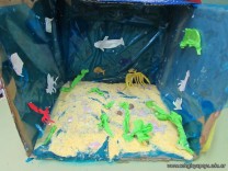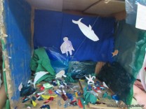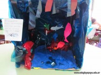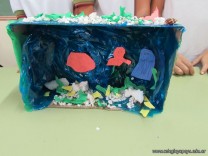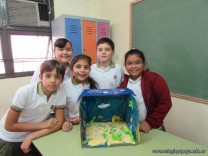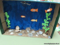 Los alumnos de 5to grado recrearon ambientes acuáticos y de transición, teniendo en cuenta características estudiadas de cada uno de ellos.