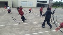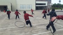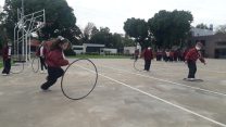 Los alumnos de 1er grado, en clases de Educación Física, comenzaron a realizar actividades de manipulación con aros.