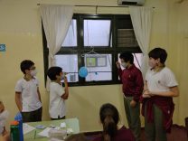 Durante el mes de septiembre los alumnos de 6to grado comprobaron que el aire pesa reproduciendo un experimento con globos y perchas.