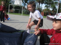 Lamentablemente el clima no nos acompañó al iniciar la jornada, y nos vimos obligados a suspender el Campamento que los alumnitos de 1er grado tan ansiosos esperaban. De todas formas, aprovechamos para enseñarles a armar y desarmar las carpas.