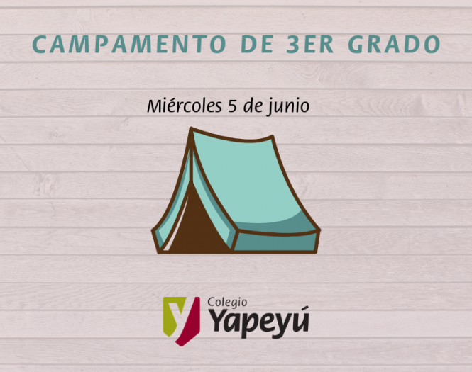 El miércoles 5 de junio será el turno de que los chicos de 3er grado de la Primaria tengan su esperado campamento. Esperamos que sea una linda jornada con las actividades tradicionales de los campamentos: armar carpas, buscar ramitas para la famosa fogata, y muchísimos juegos.