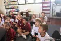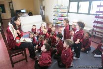 Los alumnos de las Salas de 5 visitaron la Biblioteca, allí María Elena les contó todo sobre dinosaurios.