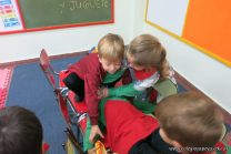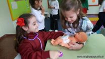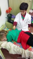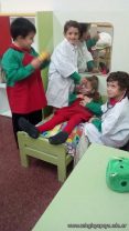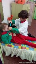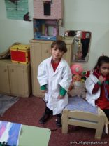 Los niños de las salas de 5 años disfrutan jugando al hospital. Se crearon roles, prepararon carteles, armaron el escenario apropiado y jugaron.