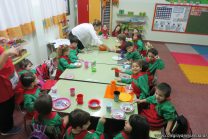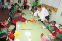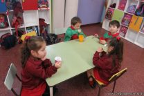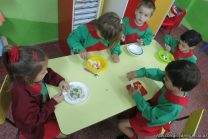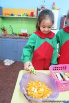 Los niños de salas de 4 años realizaron una ensalada de frutas con las profesoras de inglés para poner en práctica el vocabulario aprendido. Conocieron los pasos a seguir y luego lo pusieron en práctica.