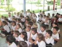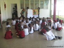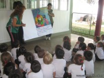 Aquí se puede observar a los chicos mientras ven y escuchan el cuento “Aladino y la lámpara maravillosa”, que fue prestado por los padres del niño Ignacio Caja. ¡Gracias Flia. Caja!