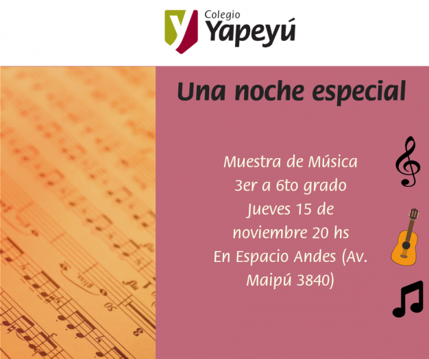 Los invitamos a la muestra de la asignatura Música. Allí los chicos de 3ro, 4to, 5to y 6to grado de la Primaria tienen preparado un show que promete regalarnos una noche especial.