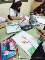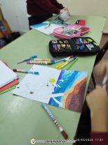 Los alumnos de 6to grado realizaron trabajos con una técnica aplicada con lápices de fibras de colores, replicando fragmentos de vidrio.