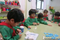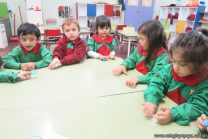 Los alumnos de sala de 4 años, como parte de la Unidad Didáctica “Jugando como en 1810”, confeccionaron escarapelas con porcelana fría pintándola con témperas.