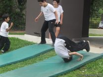 Les mostramos imágenes para compartir las actividades que realizan los alumnos de 3er grado en las clases de Educación física. En esta ocasión realizaron destrezas gimnasticas y diferentes tipos de apoyos en colchoneta. Rol adelante, rol atrás e iniciación a la vertical fueron los contenidos desarrollados con mucho entusiasmo de parte los niños.
