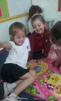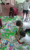 Se los puede ver disfrutar a los niños de sala de 5 años, jugando con las nuevas alfombras didácticas, en el momento de juegos en los rincones.