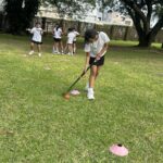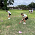 Las alumnas de 5to grado realizaron trabajos de conducción y pases en clase de Educación Física.