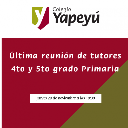 El jueves 29 de noviembre a las 19:30 se realizará la última reunión de tutores de 4to y 5to grado. ¡Los esperamos! Es importante su presencia para compartir con ustedes el balance del año lectivo 2018.