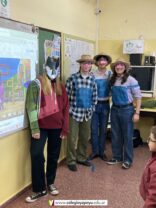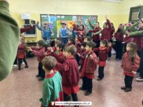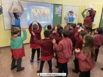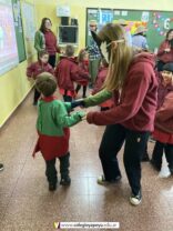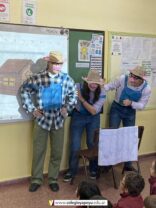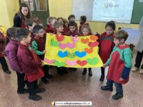 Los alumnos de 6to año recibieron la visita de los niños de una sala de jardín, en agradecimiento por los juegos didácticos que los más grandes del colegio les confeccionaron con mucho amor. Les llevaron un afiche lleno de corazones, ¡hermoso! y les contaron que prendieron a cantal el himno. Los chicos de sexto los esperaban con el cuento de Los tres chanchitos, estando varios alumnos caracterizados con los cerditos y el lobo. Compartieron el cuento con finales abiertos opuestos por las más chiquitos y luego se despidieron bailando una coreografía. Fue una experiencia muy gratificante para todos los chicos.